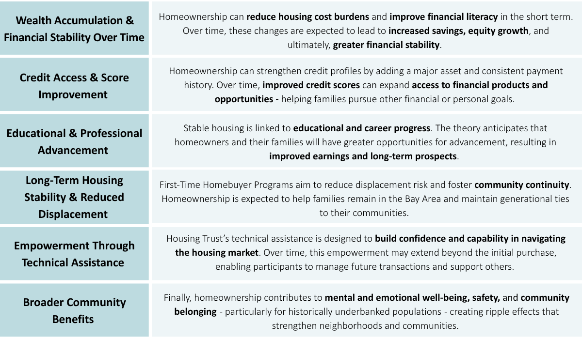 Homeownership is more than a financial milestone—it’s a foundation for stability, permanence, and community connection. It allows families to anchor themselves in place, build equity over time, and resist displacement in high-cost regions. In areas like Silicon Valley, where housing pressures are intense, owning a home can be a critical buffer against displacement and a pathway to staying rooted in place.